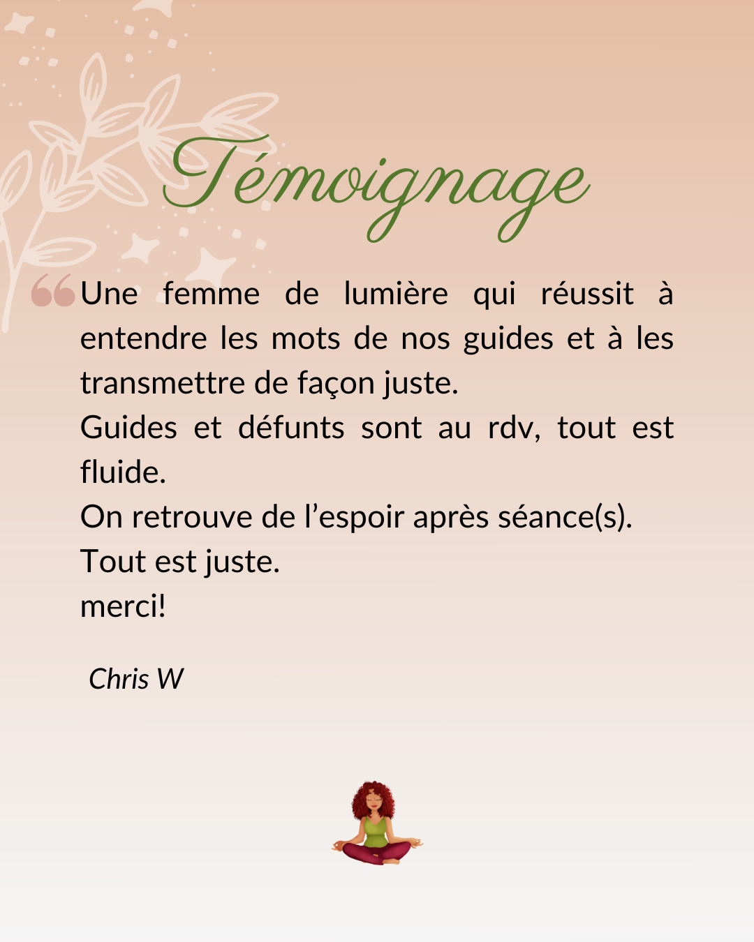 C’est un moment de connexion où je me relie à l’énergie de votre proche passé de l’autre côté du voile.